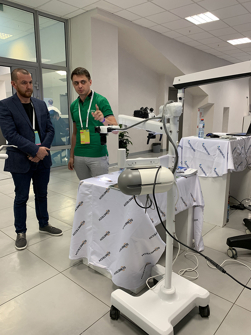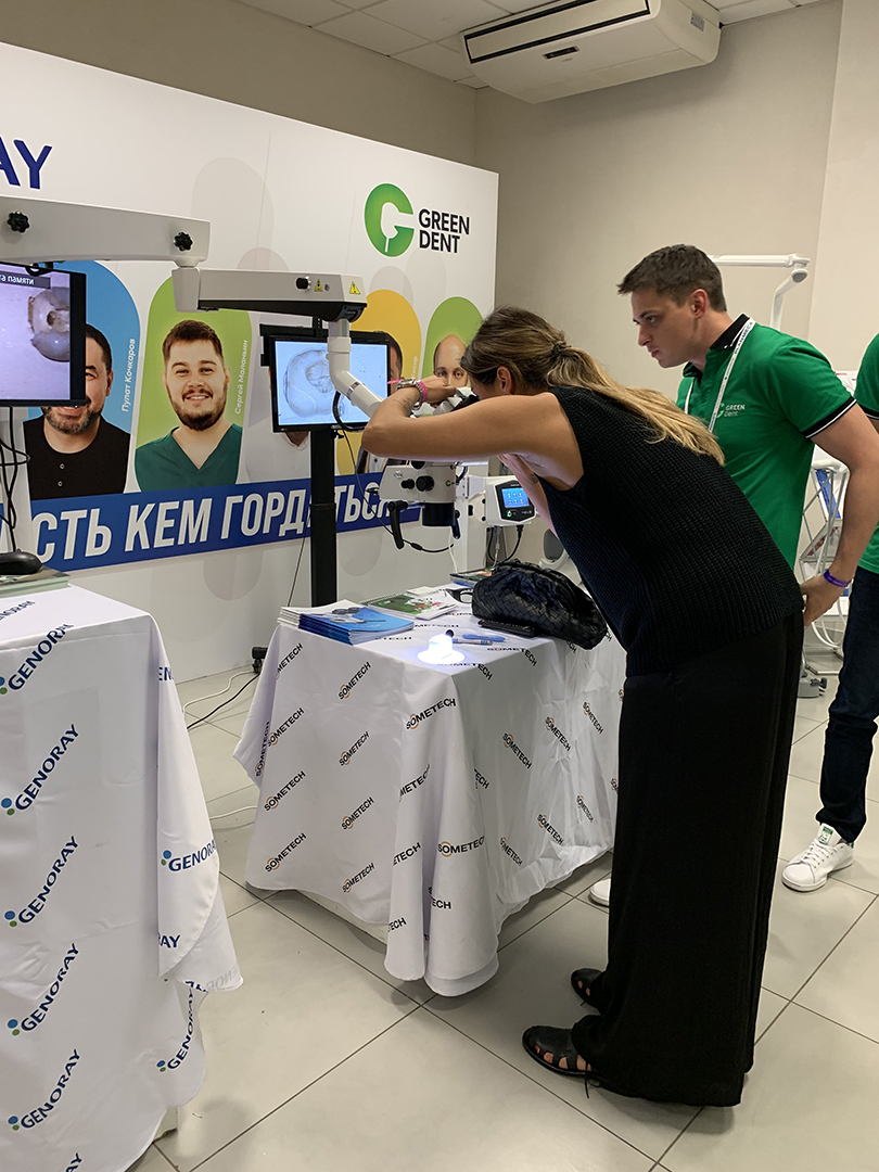 Помимо насыщенной программы, у всех участников была возможность поближе познакомиться с качественным стоматологическим оборудованием. Компания Green Dent подготовила экспозицию из своего самого лучшего оборудования: дентальный томограф Genoray, стоматологические операционные микроскопы GreenMED и Sometech и итальянская стоматологическая установка Miglionico.