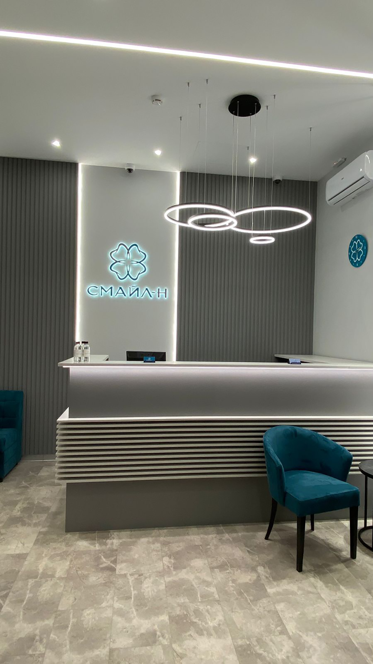Реализовывать дизайн-проект стоматологической клиники «Смайл-Н» было непросто. Выбранный стиль требовал особого отношения к строительным работам.