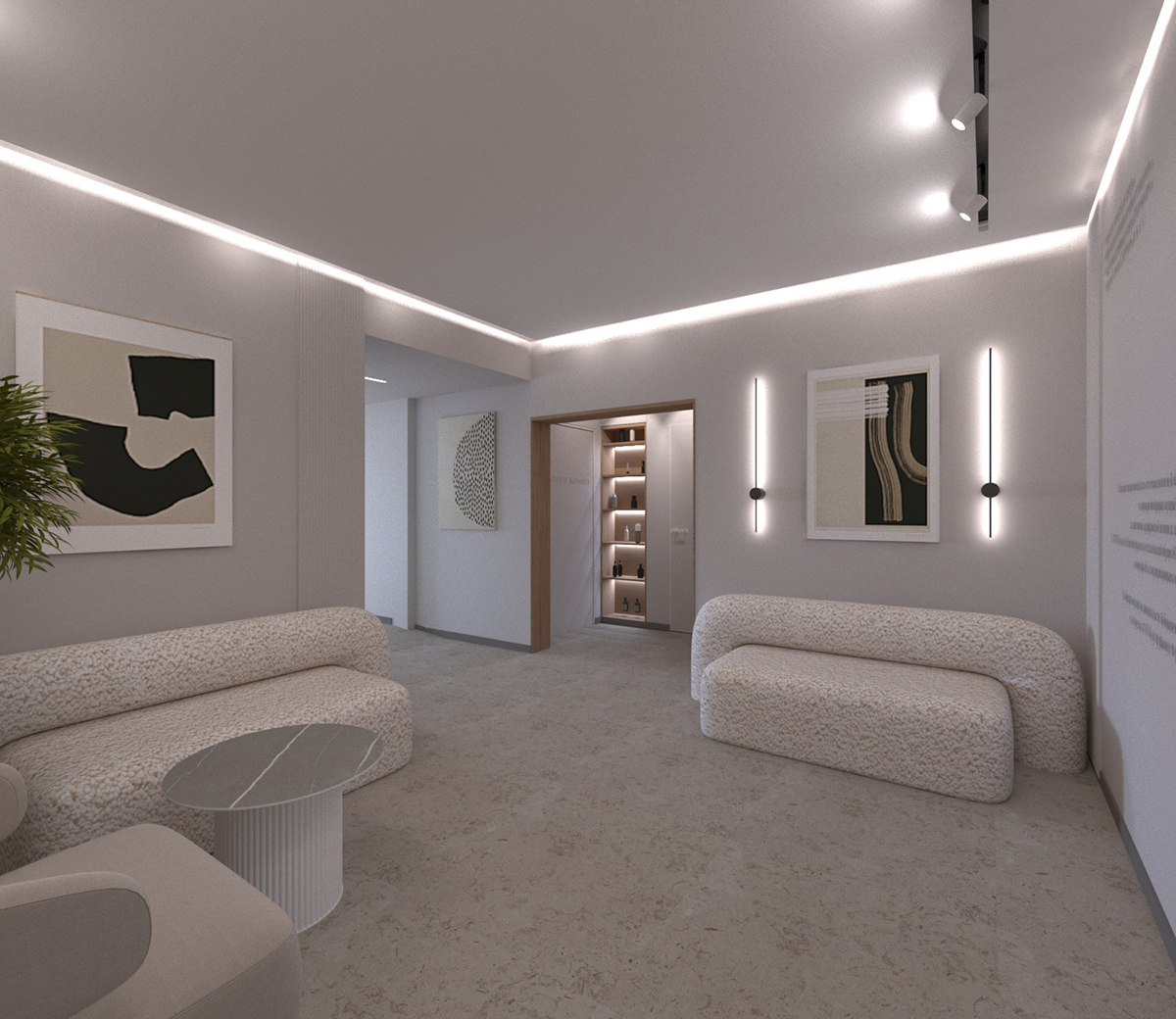 • Тёплой цветовой палитре (бежевый, серый, белый)