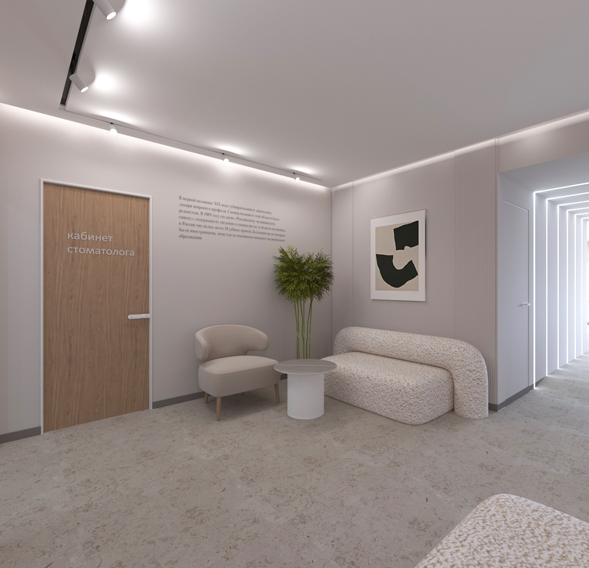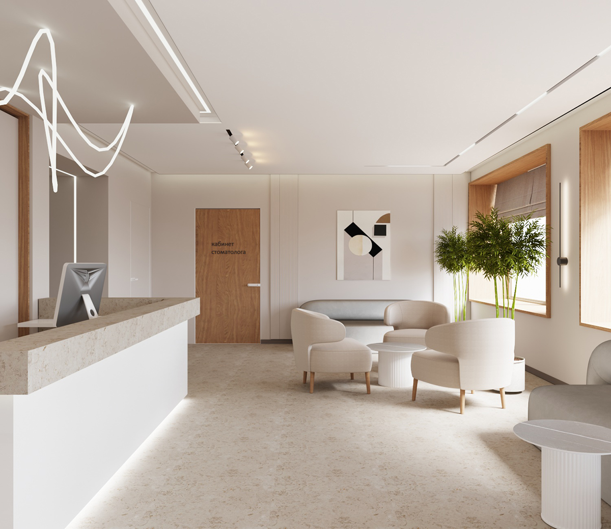 Немного мебели, побольше света, натуральные материалы и природные мотивы. Всё перемешать, добавить стоматологическое оборудование – и вуаля: стоматология, в которую хочется возвращаться снова и снова готова!